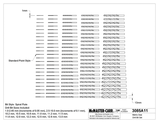 View full detailsMcMaster 3085A11 Metric Black-Oxide High-Speed Steel Drill Bit Set 118 pc